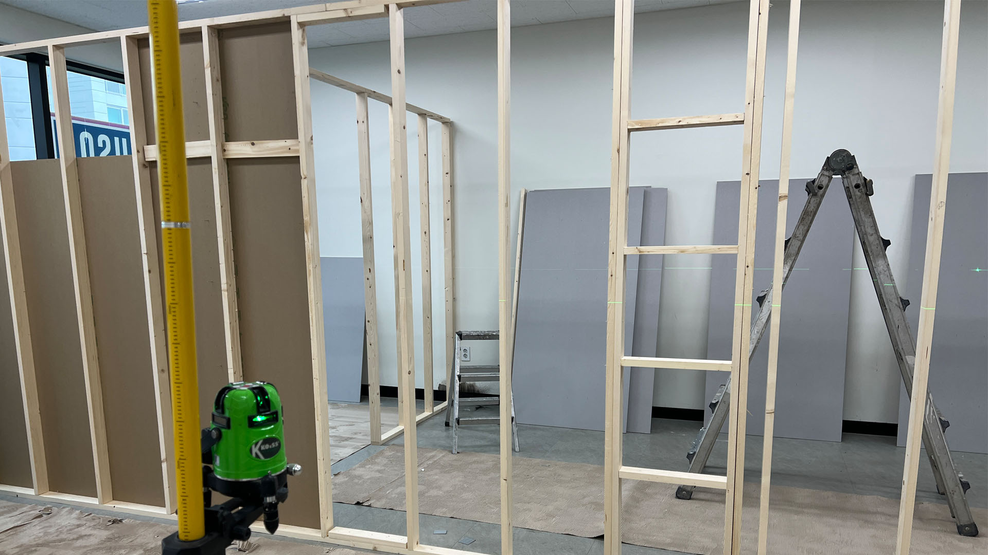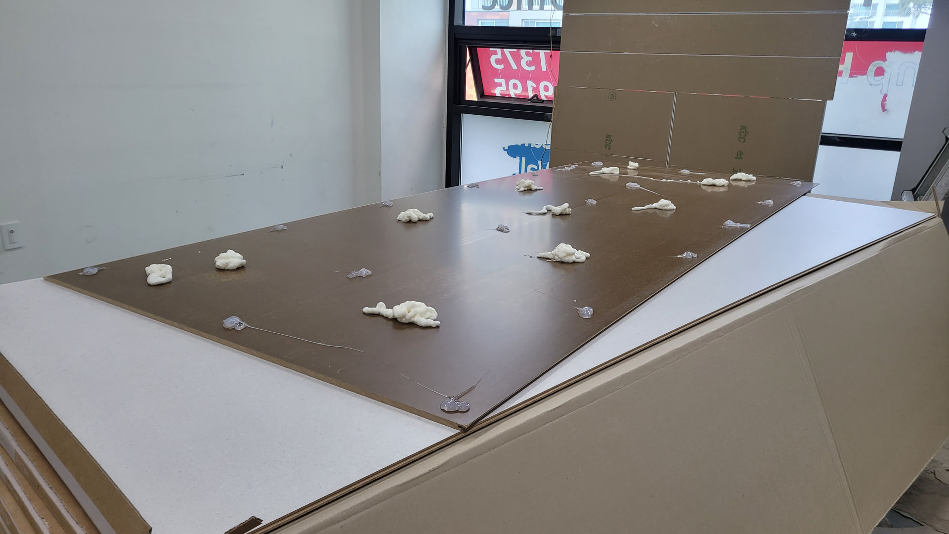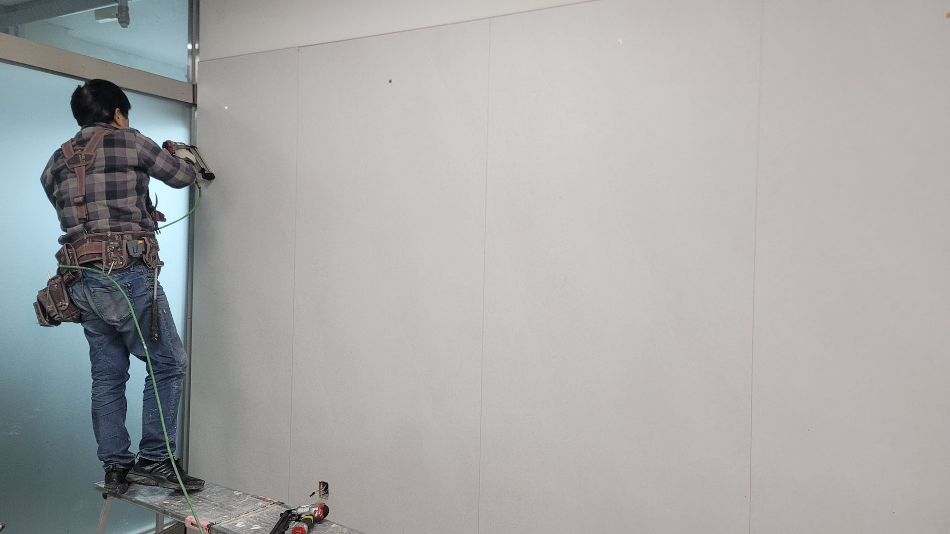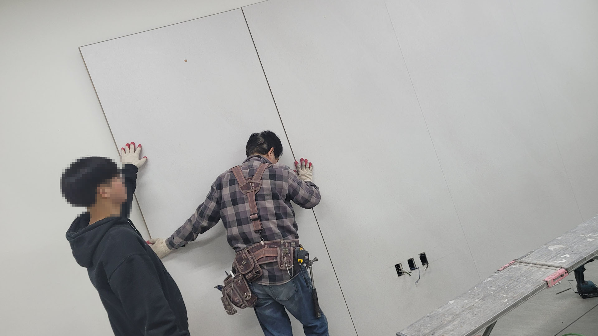 건식벽 시공 본드칠