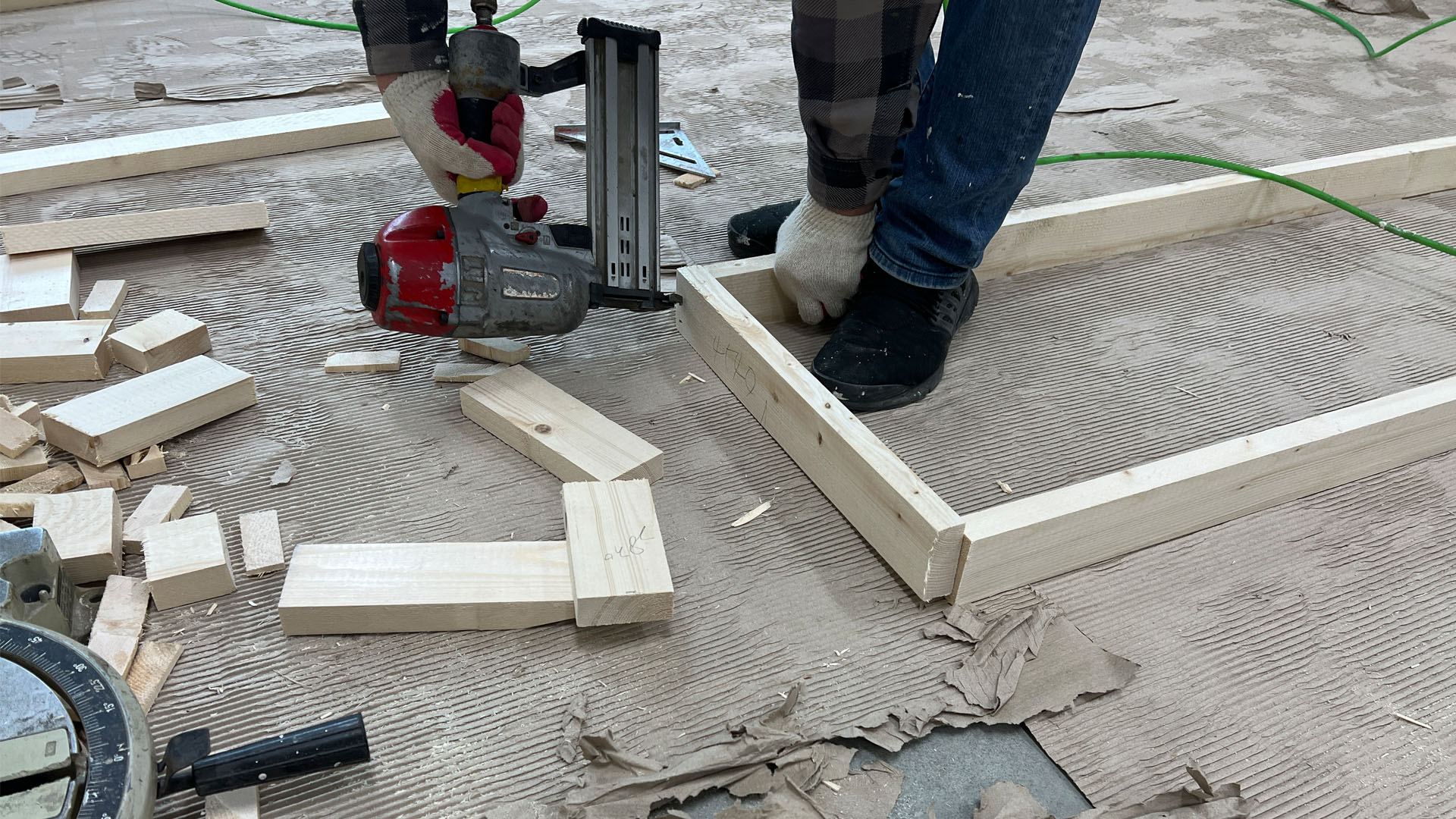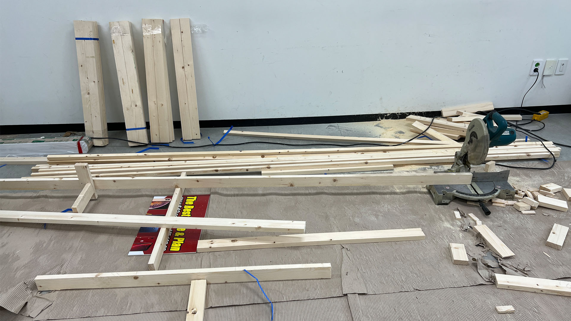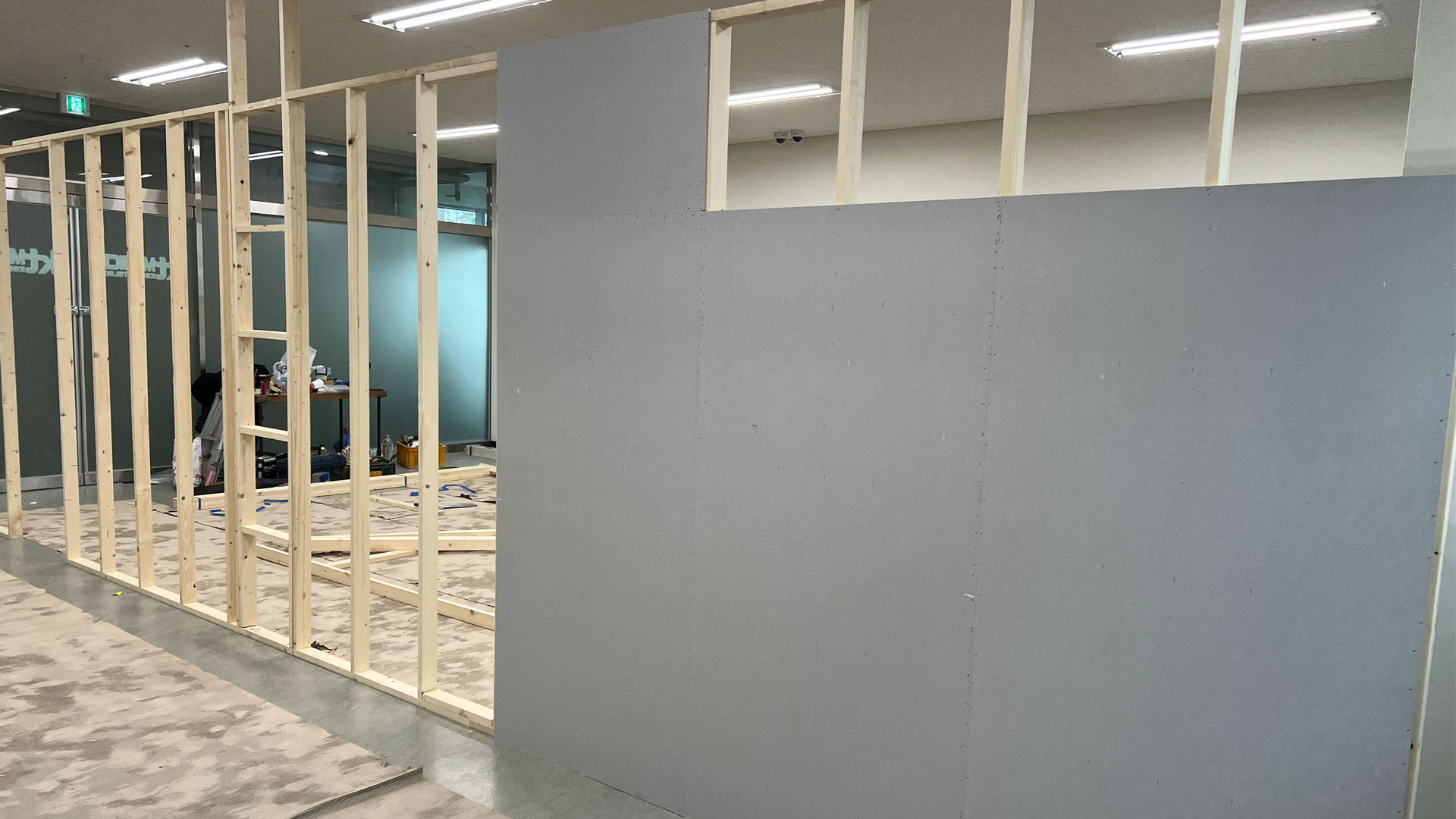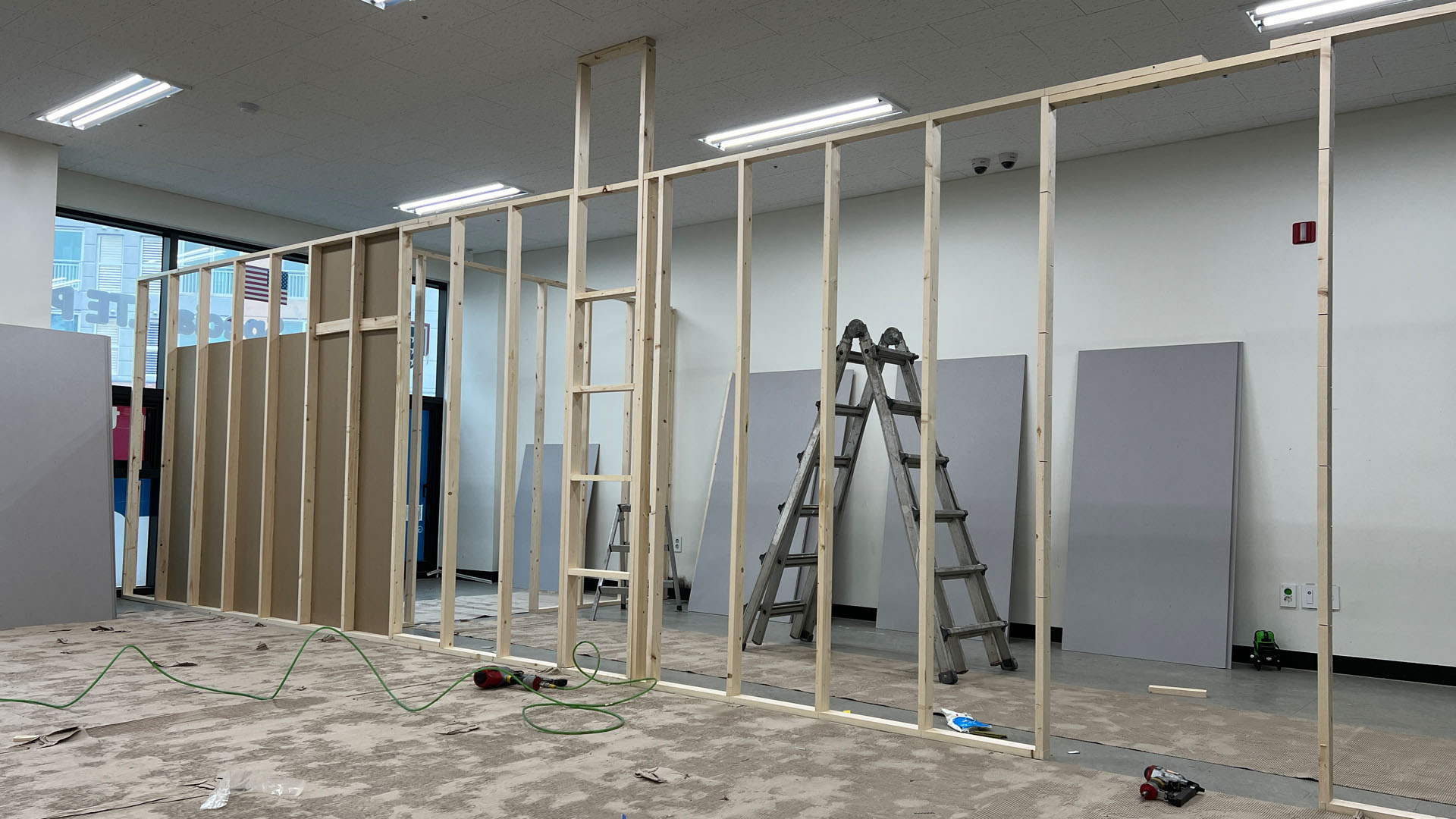 건식벽 시공 본드칠
